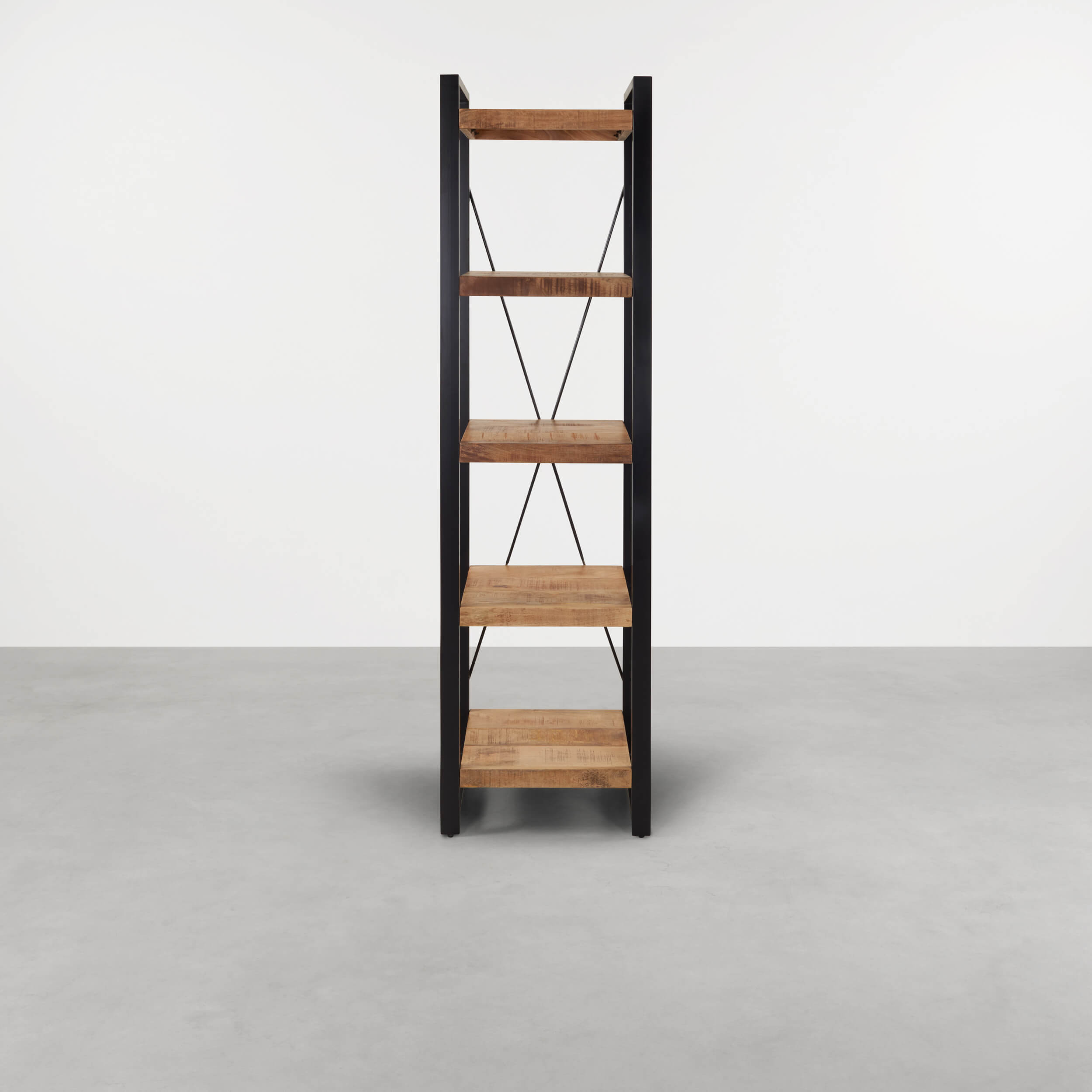 Deze Mangohouten boekenkast Britt 55cm combineert warme houttinten met een stoer zwart frame. Is de geweldige aanwinst in een robuust huishouden!