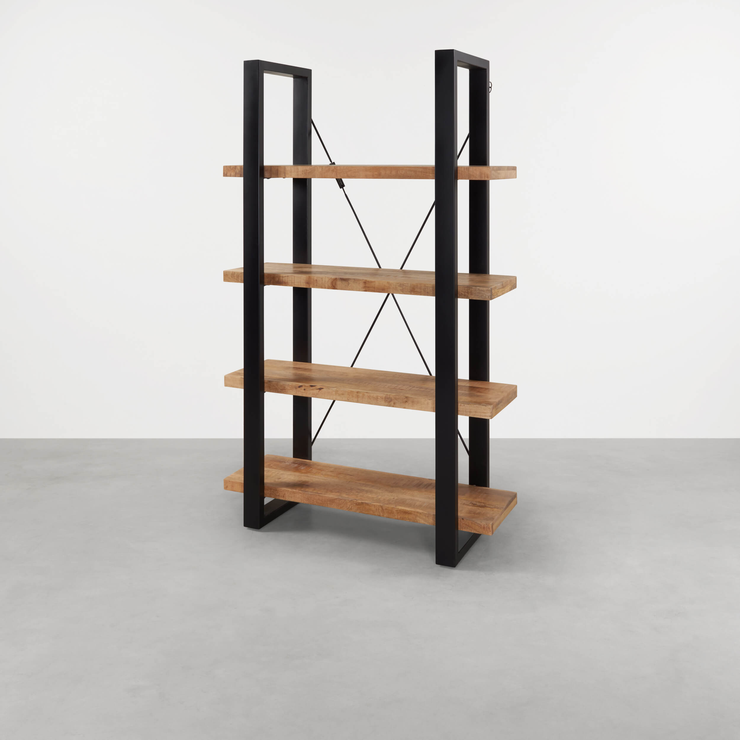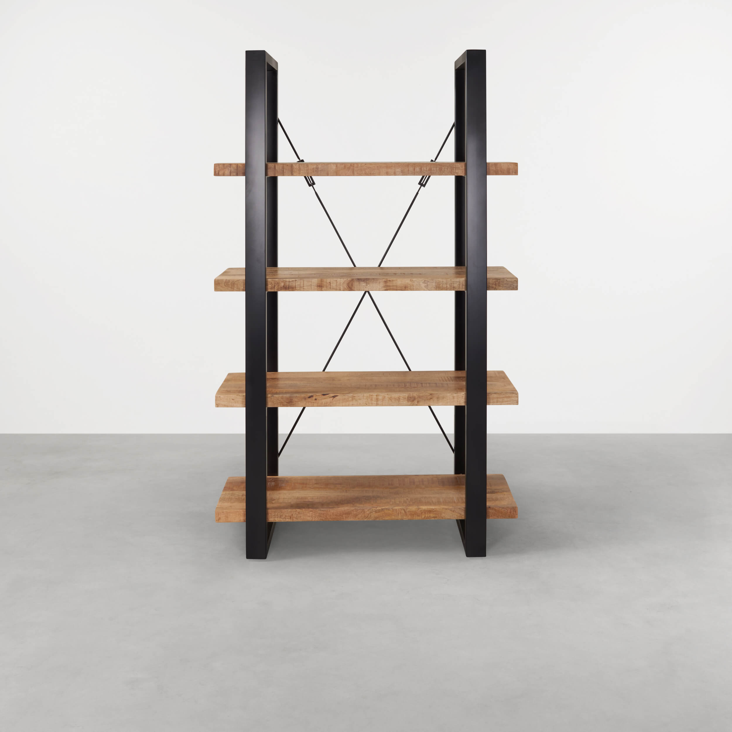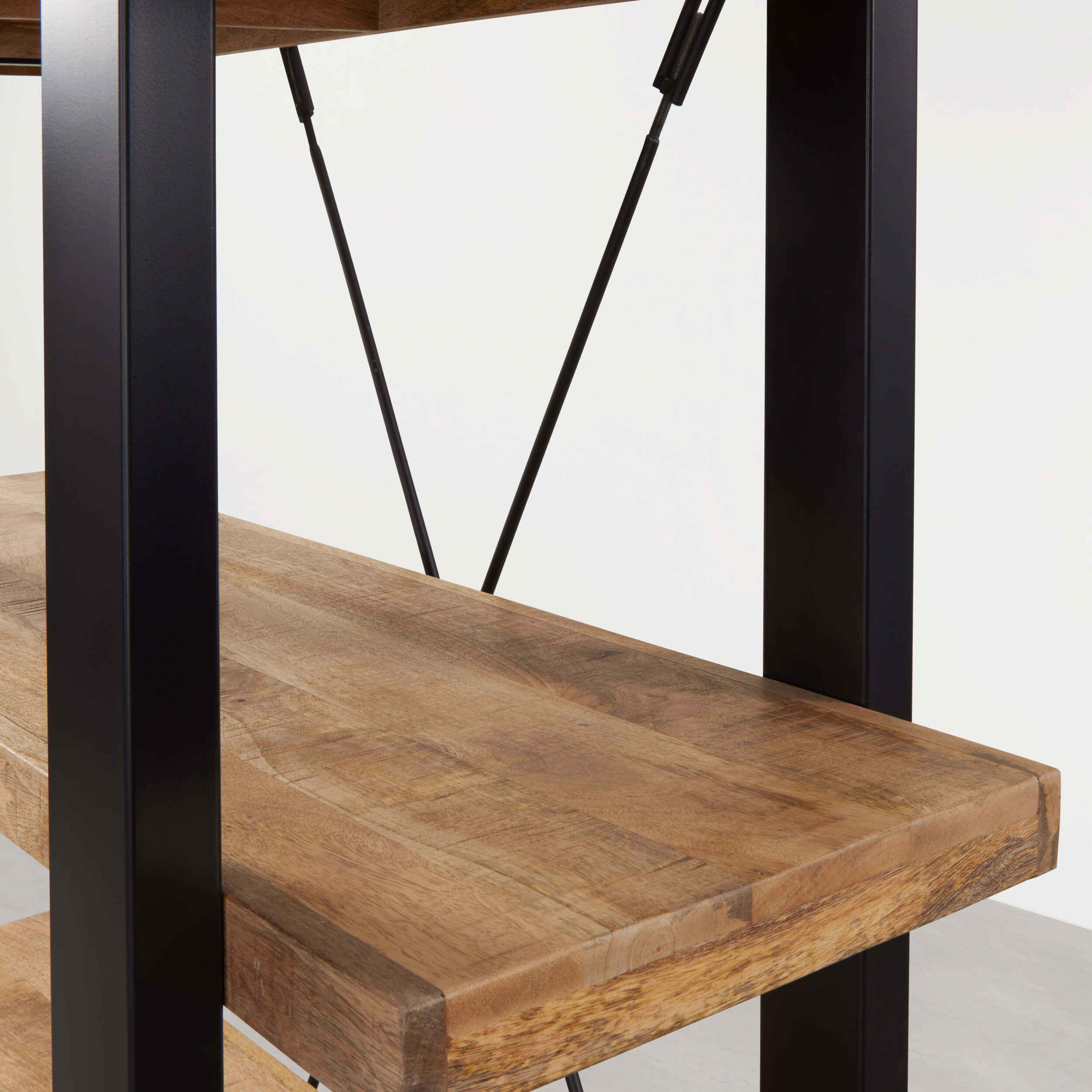 Deze Mangohouten boekenkast Thor Roomdivider van 120 cm breed combineert warme houttinten met een stoer zwart frame. Is de geweldige aanwinst in een robuust huishouden!