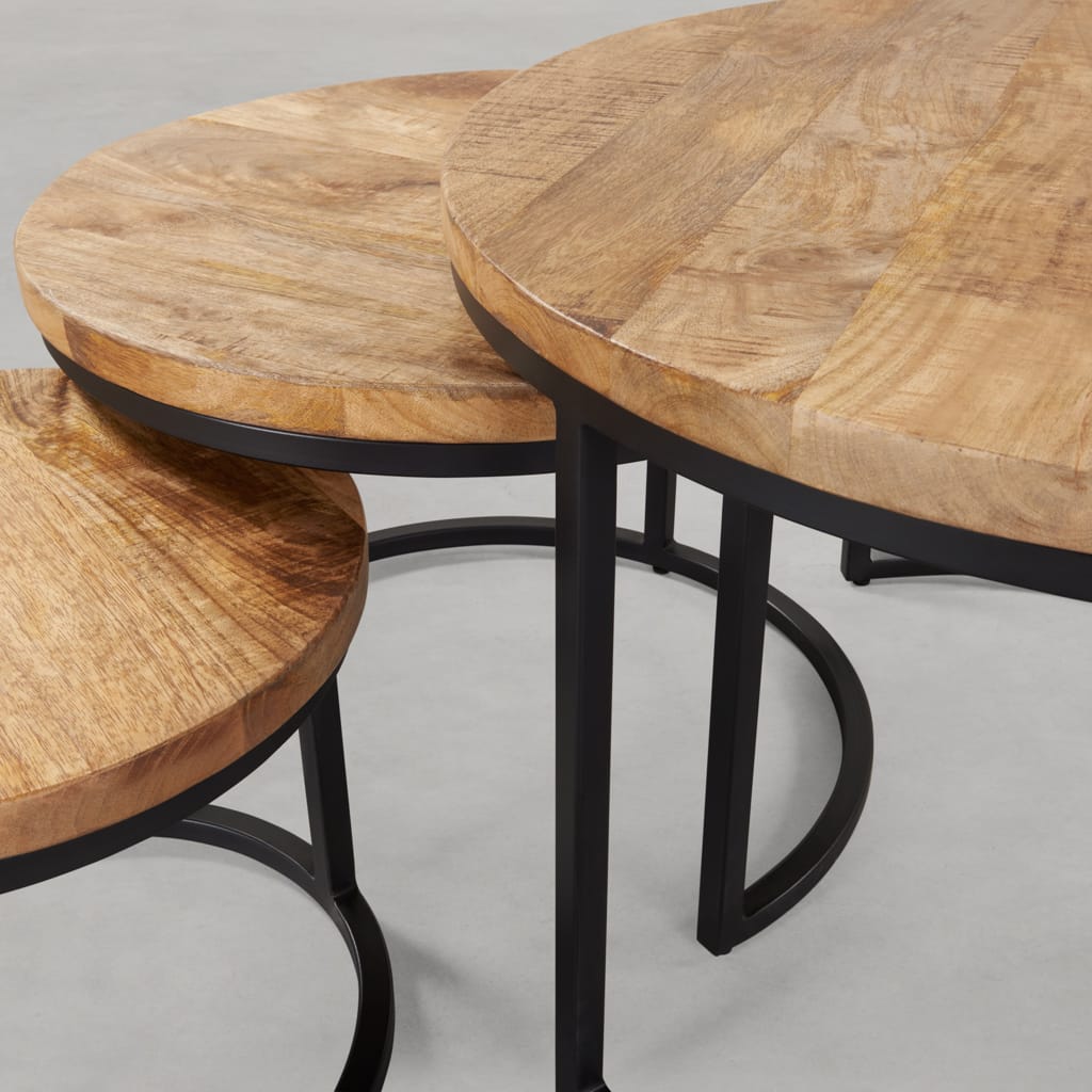 Ronde salontafel set mangohout 3 stuks, ruim, speels en klassiek